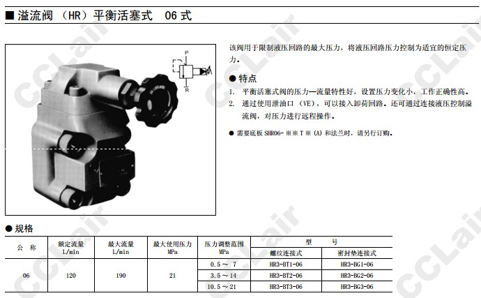 HR3-BT1-06,HR3-BT2-06,HR3-BT3-06,HR3-BG1-06,HR3-BG2-06,HR3-BG3-06,平衡活塞式溢流閥