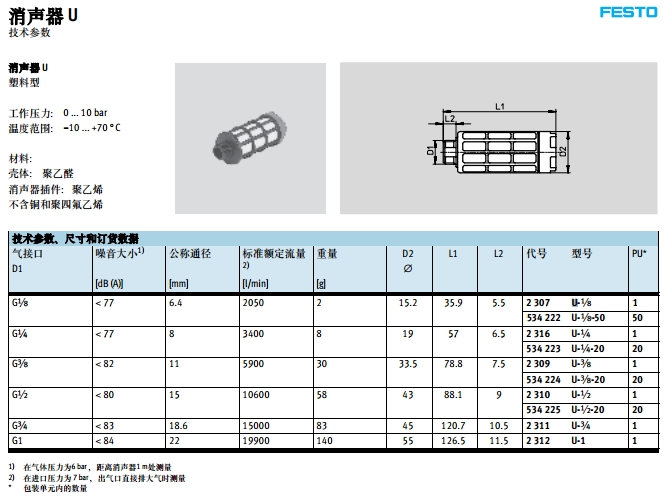 詳細(xì)信息 U-1/8,U-1/8-50,U-1/4,U-1/4-20,U-3/8,U-3/8-20,festo消聲器