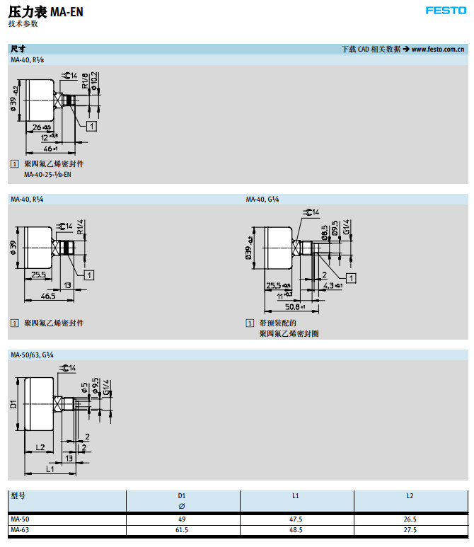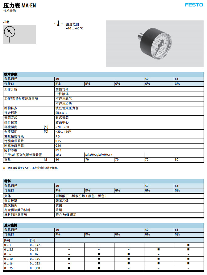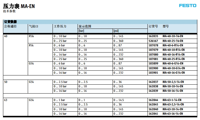 MA-40-10-1/8-EN,MA-50-16-1/4-EN,MA-63-1-1/4-EN,festo壓力表