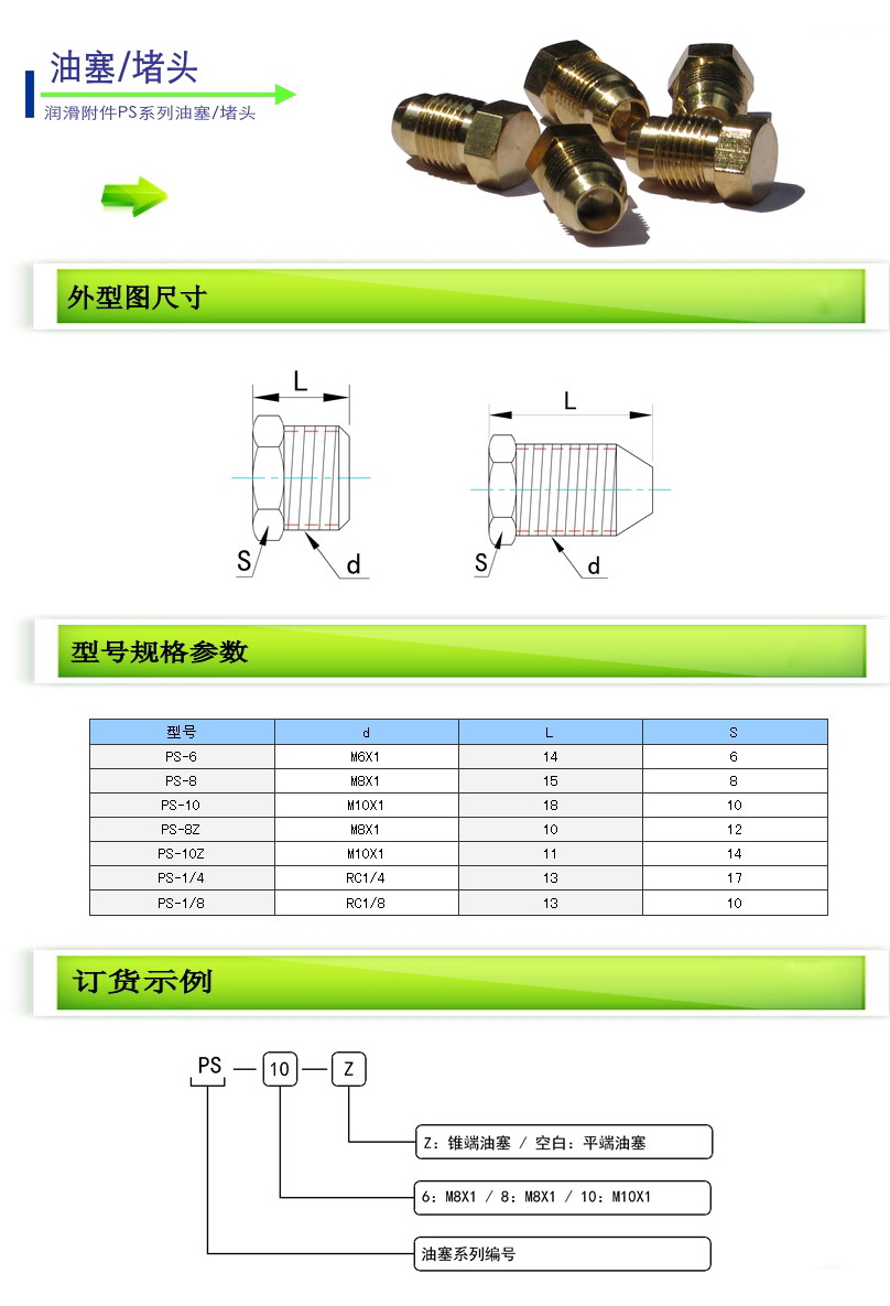 詳細(xì)信息 PS-6,PS-8,PS-10,PS-8Z,PS-10Z,PS-1/4,PS-1/8,油塞/堵頭