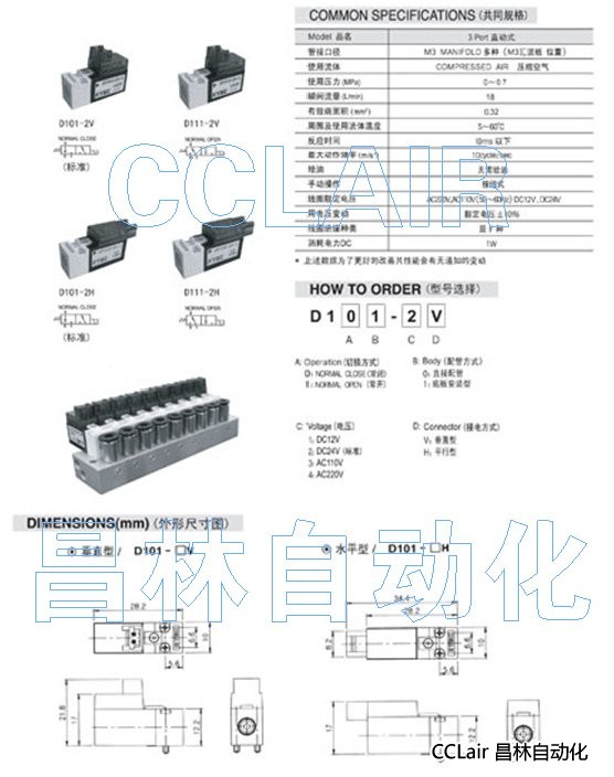 D101-1V,D101-2V,D101-3V,D101-4V,3通直動(dòng)型電磁閥