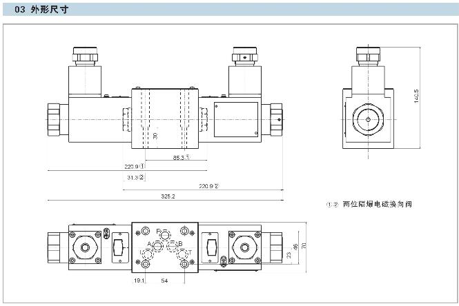二、技術(shù)參數(shù):規(guī)格 06 10 最高工作壓力 (MPa) 31.5 最大流量 (L/min) 220 430 工作介質(zhì) 礦物質(zhì)液壓油;磷酸脂 介質(zhì)油溫范圍 (℃) -20~70 介質(zhì)粘度范圍 (mm2/s) 2.8~380 開(kāi)啟壓力 (MPa) a:0.05 b:0.4 工作電壓 (V) 直流 24 *交流 127, 220 防護(hù)等級(jí) IP55