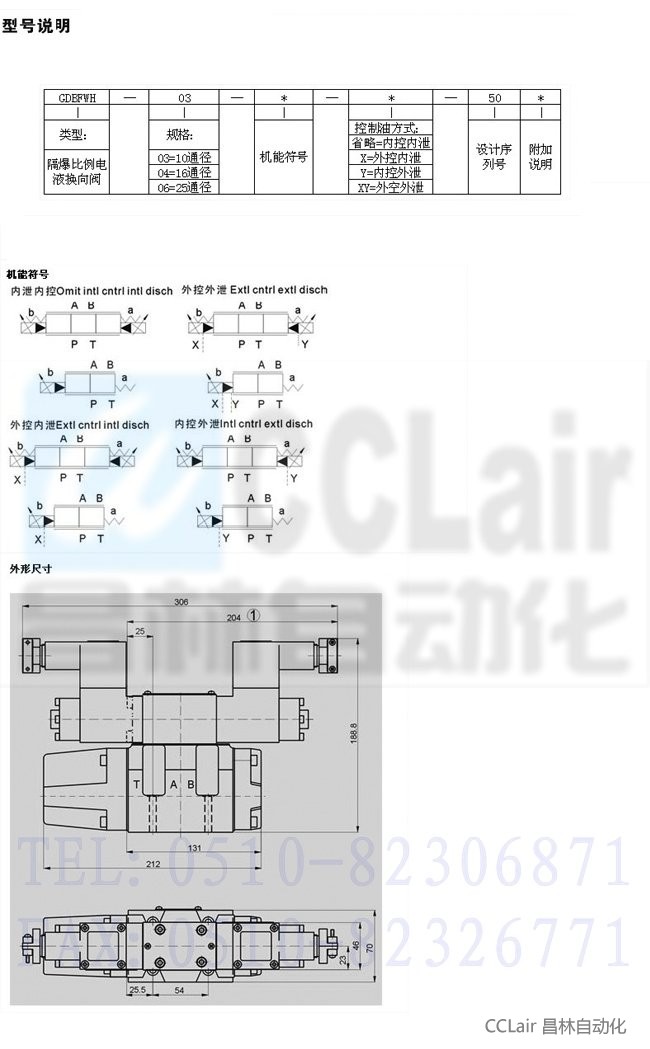 本閥是隔爆型電液換向閥,是由隔爆電磁閥作為先導(dǎo)控制的滑閥式換向閥,用于控制液流的通斷和流動方向。