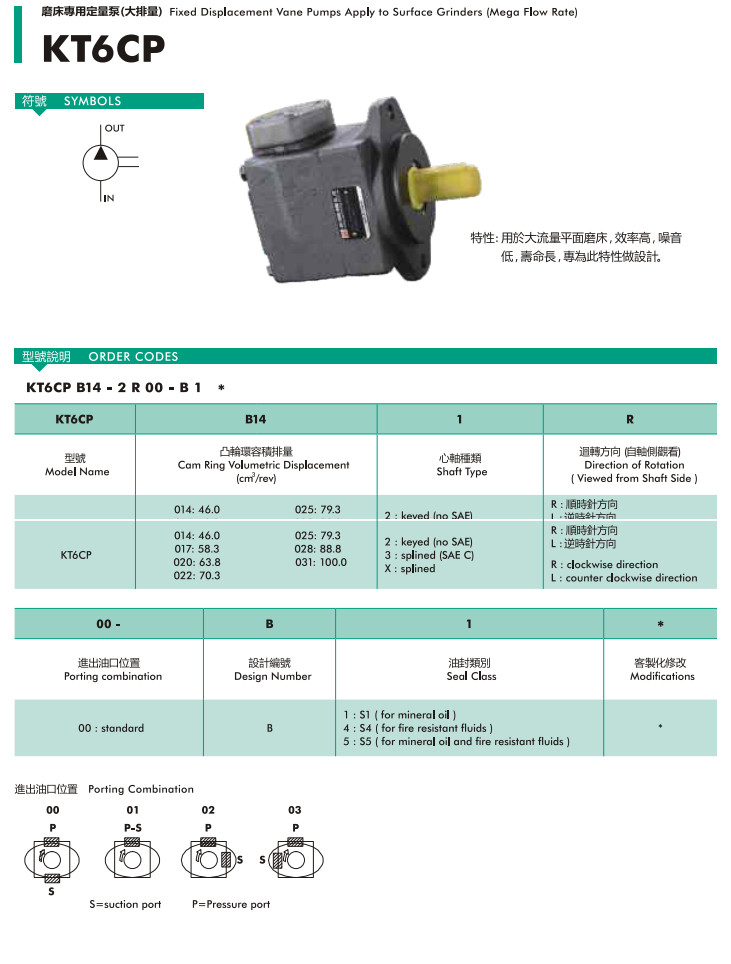 KT6CP-014-XL00-B5*,KT6CP-017-XL00-B5*,KT6CP-020-XL00-B5*,KT6CP-022-XL00-B5*,KT6CP-025-XL00-B5*,KT6CP-028-XL00-B5*,KT6CP-031-XL00-B5*,磨床專用定量泵(大排量)
