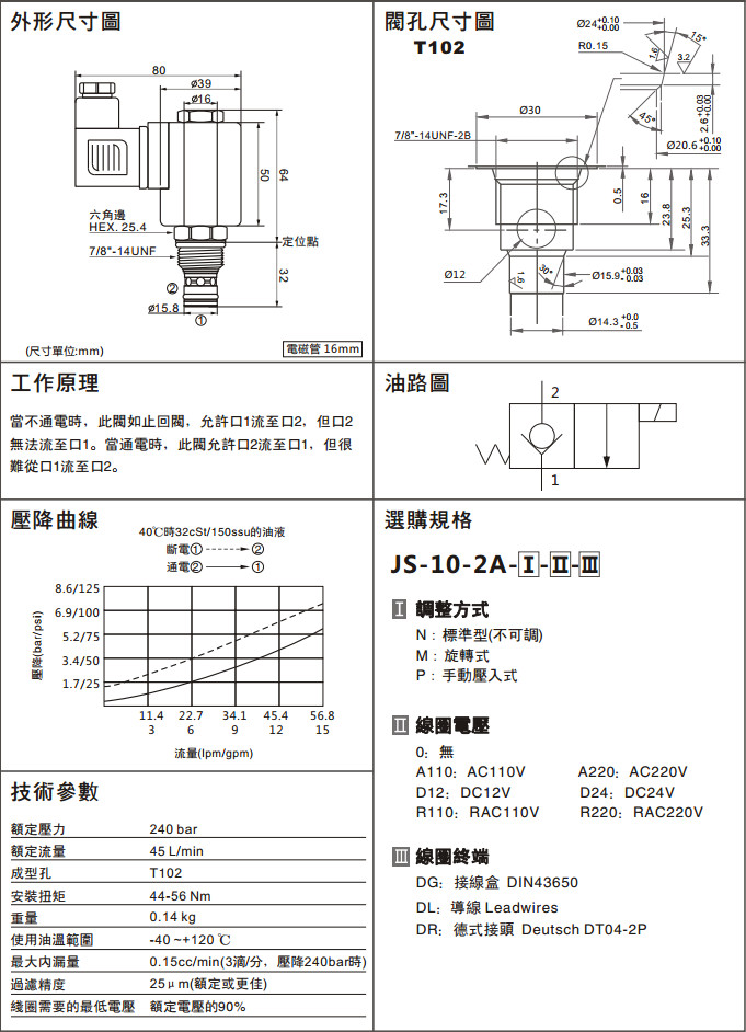 JS-10-2A-P-0-DR,JS-10-2A-P-A110-DR,JS-10-2A-P-D12-DR,JS-10-2A-P-R110-DR,JS-10-2A-P-A220-DR,JS-10-2A-P-D24-DR,JS-10-2A-P-R220-DR,兩通常閉型電磁換向閥