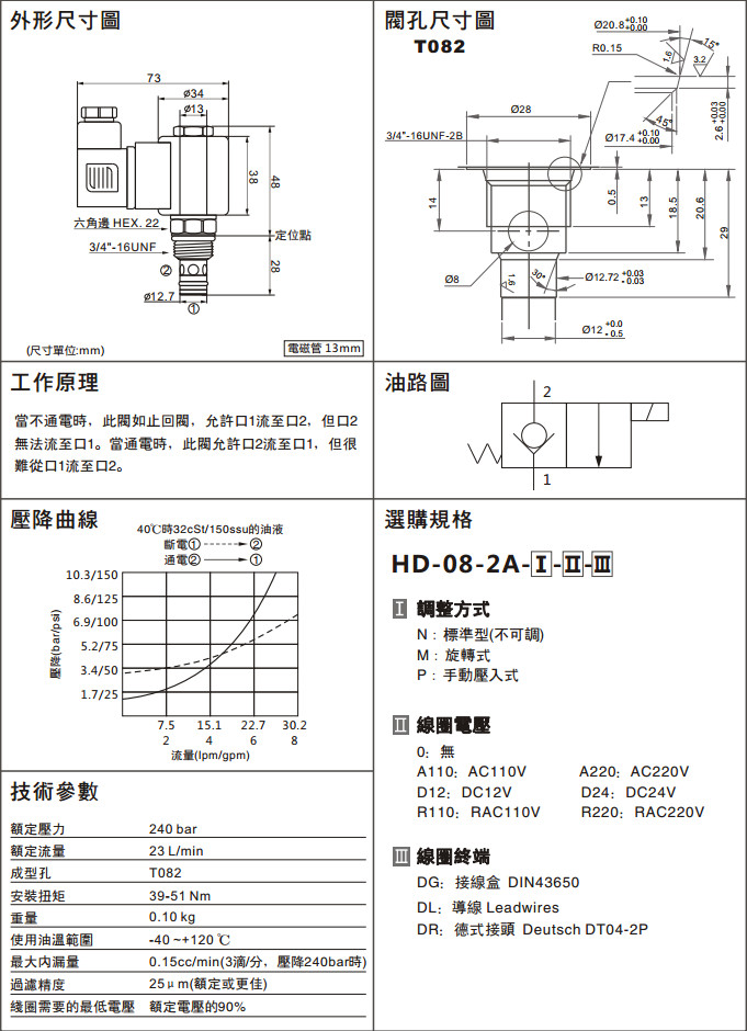 HD-08-2A-P-0-DR,HD-08-2A-P-A110-DR,HD-08-2A-P-D12-DR,HD-08-2A-P-R110-DR,HD-08-2A-P-A220-DR,HD-08-2A-P-D24-DR,HD-08-2A-P-R220-DR,兩通常閉型電磁換向閥