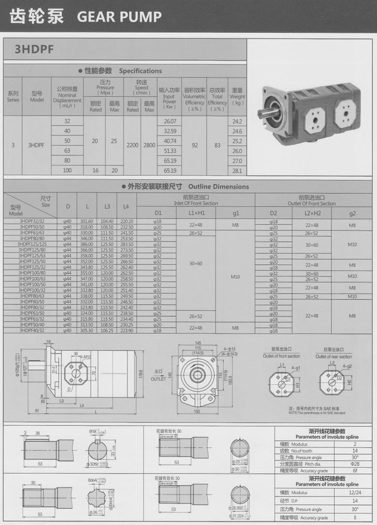 3HDPF32/32,3HDPF50/50,3HDPF63/63,3HDPF80/80,3HDPF125/125,3HDPF125/80,齒輪泵