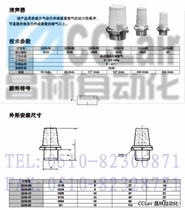 詳細信息 QXS-06,QXS-08,QXS-10,QXS-15,QXS-20,QXS-25,消聲器 ,價格