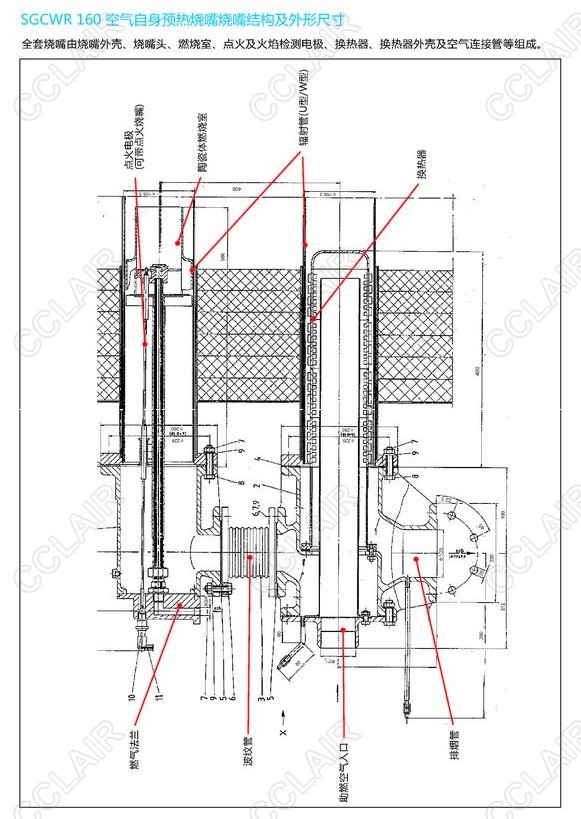 詳細(xì)信息 SGCWR160,空氣自身預(yù)熱輻射管燒嘴