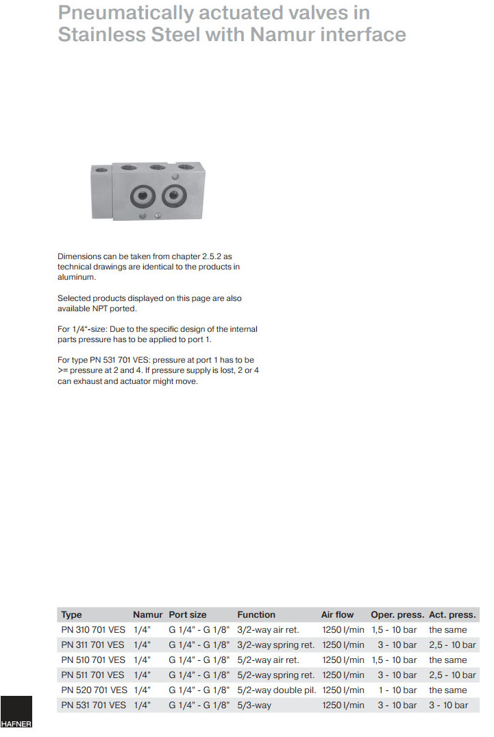 PN310701VES,PN311701VES,PN510701VES,PN511701VES,PN520701VES,PN531701VES,Hafner不銹鋼氣動閥