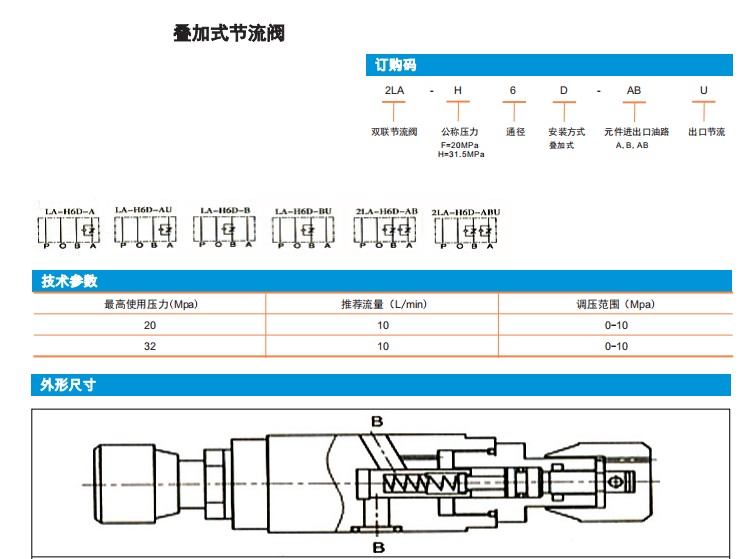 LA-H6D-A,LA-H6D-AU,LA-H6D-B,LA-H6D-BU,2LA-H6D-AB,2LA-H6D-ABU,疊加式節(jié)流閥