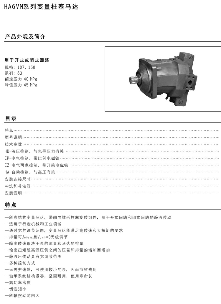 HA6VM107,HA6VM160,HA6VM107HD1D/63W,HA6VM160HD1D/63W,HA6VM107HA1T/63W,變量柱塞馬達