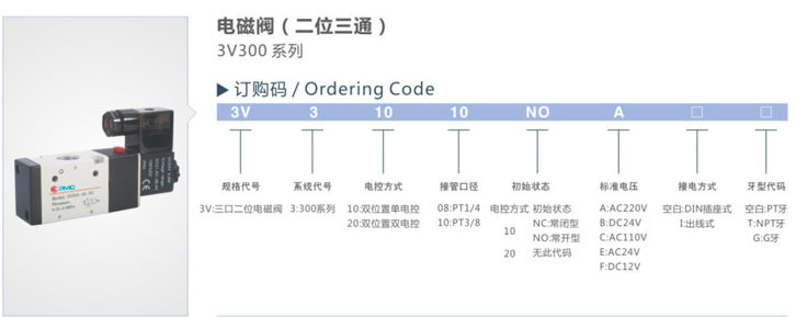 您當前的位置:首頁 » 產(chǎn)品&解決方案 » 3V310-08-NC-A,3V310-08-NC-B,3V310-10-NO-C,3V320-08-NO-E,3V320-10-NO-F,二位三通電磁閥