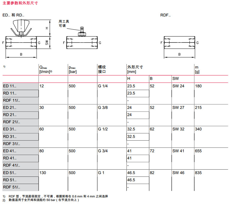 ED11-K,RD11-K,ED21-K,RDF31/1.0-K,RDF41/1.0-K,節(jié)流閥