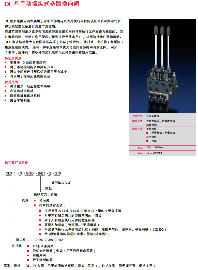詳細信息 DL11-3-GGD-B/E1,DLSR31-3-GGD-B/E1,DLS41-3-GGD-B/E1,手動操縱式多路換向閥
