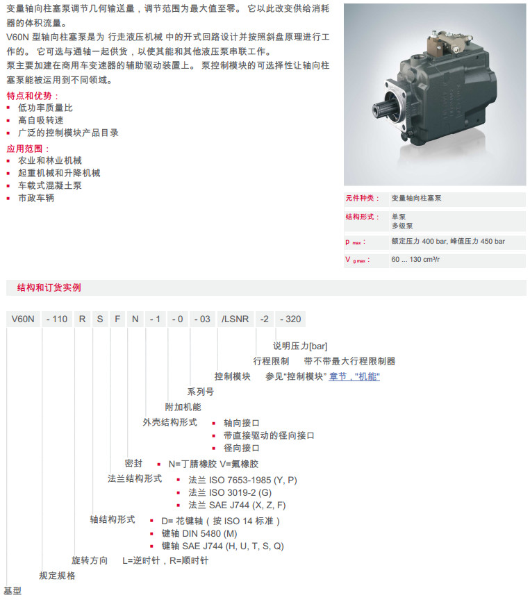 詳細信息 V60N-060LSFN-1,V60N-090LSFN-1,V60N-110LSFN-1,V60N-130LSFN-1,變量軸向柱塞泵