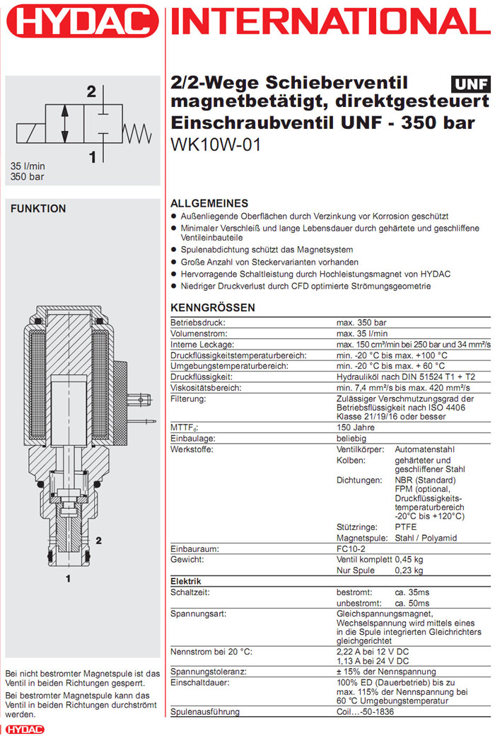 WK10W-01-C-N-24DG,WK10W-01-C-N-230AG,HYDAC電磁2/2方向滑閥