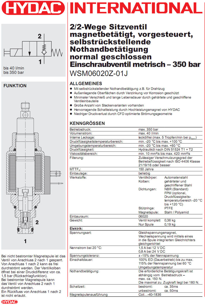 首頁 > 產(chǎn)品&解決方案 > WSM06020Z-01J-C-N-24DG,WSM06020Z-01J-C-N-230AG,HYDAC電磁2/2方向座閥