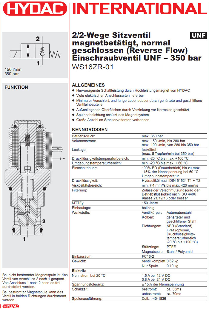 首頁(yè) > 產(chǎn)品&解決方案 > WS16ZR-01-C-N-24DG,WS16ZR-01-C-N-230AG,HYDAC電磁2/2方向座閥