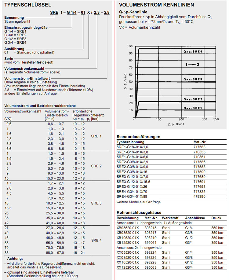 SRE1-G1/4-01X/1.6,SRE1-G1/4-01X/3.8,SRE1-G1/4-01X/6.6,SRE2-G3/8-01X/2.9,HYDAC流量控制閥
