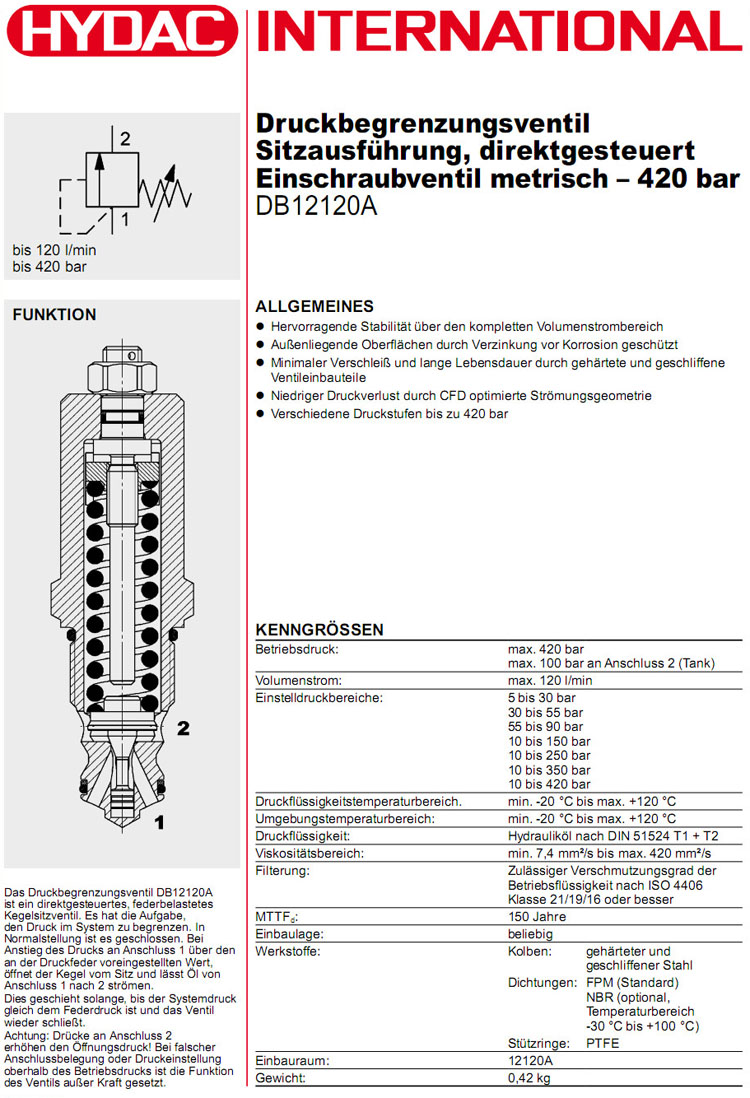 首頁 > 產(chǎn)品&解決方案 > DB12120A-01X-030V,DB12120A-01X-055V,DB12120A-01X-090V,DB12120A-01X-150V,DB12120A-01X-250V,HYDAC直動減壓閥