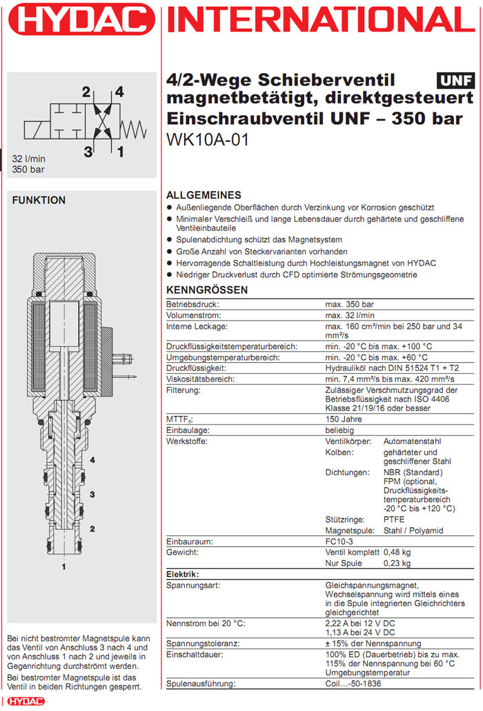 首頁 > 產(chǎn)品&解決方案 > WK10A-01-C-N-24DG,WK10A-01-C-N-230AG,HYDAC電磁4/2方向滑閥
