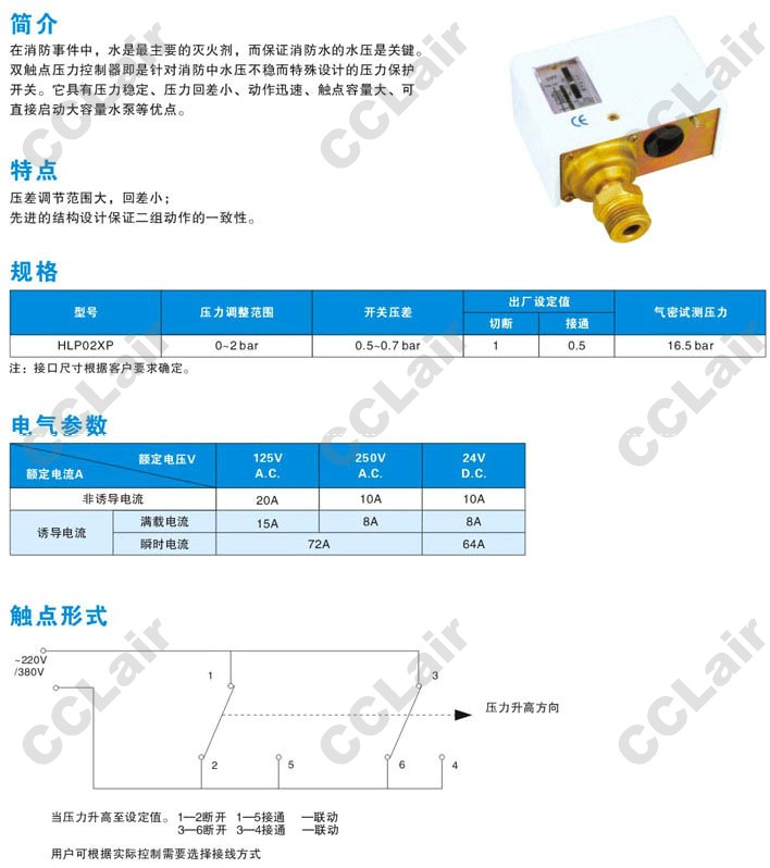 詳細(xì)信息 HLP02XP,雙觸點(diǎn)壓力控制器