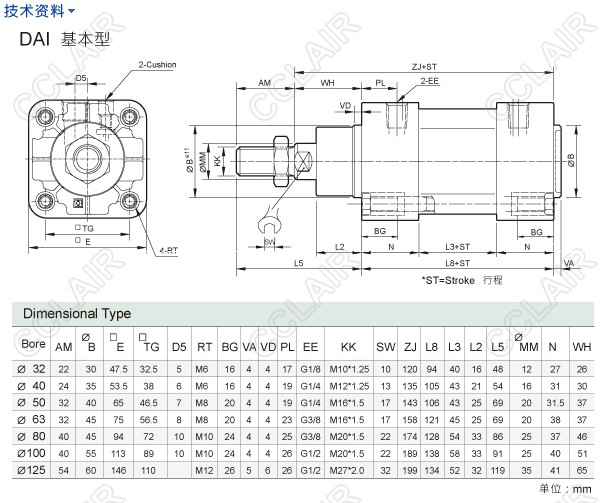 DAIE-32M50,DAIE-32M75,DAIE-32M100,DAIE-32M125,DAIE-32M150,DAIE-32M200氣缸