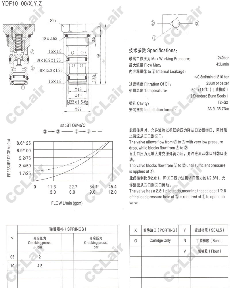 YDF10-00,液控單向閥