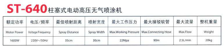 ST-640,柱塞式電動高壓無氣噴涂機 |