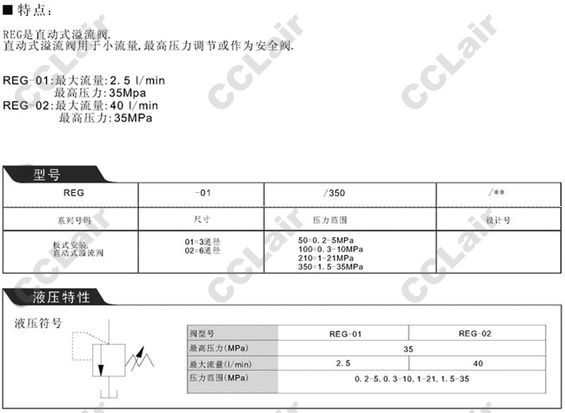 REG-01/350,REG-02/350,REG-01/50,REG-02/50,REG-01/100,REG-02/100,REG-01/2100,REG-02/210,直動式溢流閥