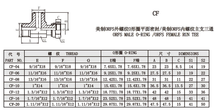 詳細信息 CF-04,CF-06,CF-08,CF-10,CF-12,CF-16,CF-20,美螺紋O形圈密封接頭