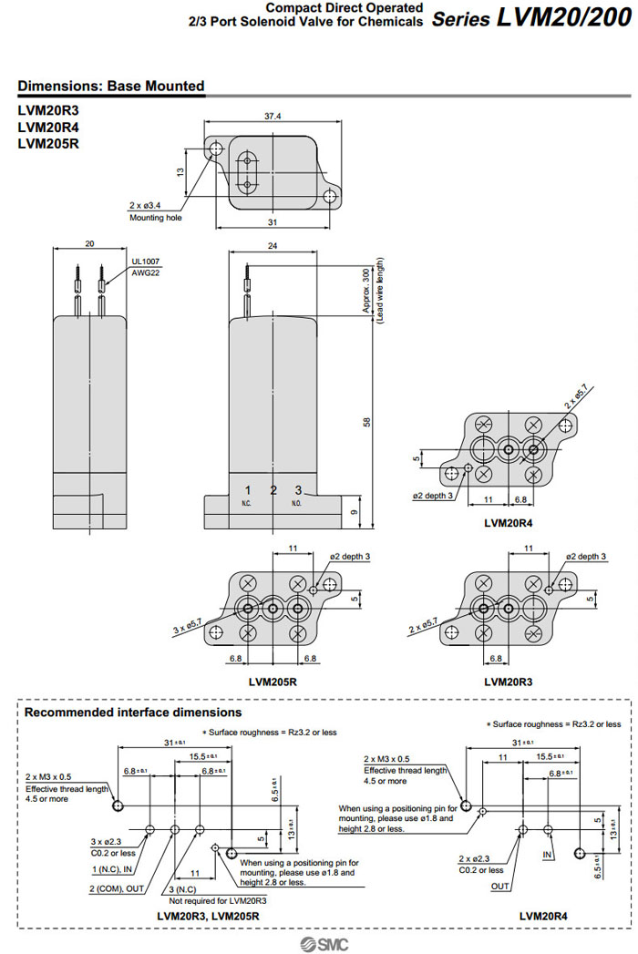 LVM20R3-5A,LVM20R3-6A,LVM20R4-5A,LVM20R4-6A,LVM205R-5A,LVM205R-6A,SMC直動(dòng)式2/3通電磁閥