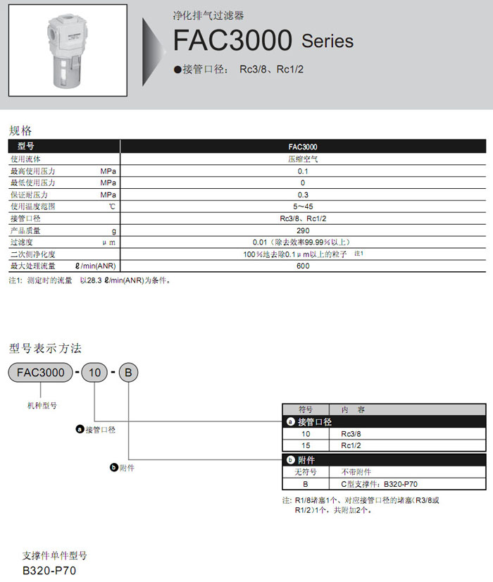詳細(xì)信息 FAC3000-10,FAC3000-15,CKD凈化排氣過(guò)濾器