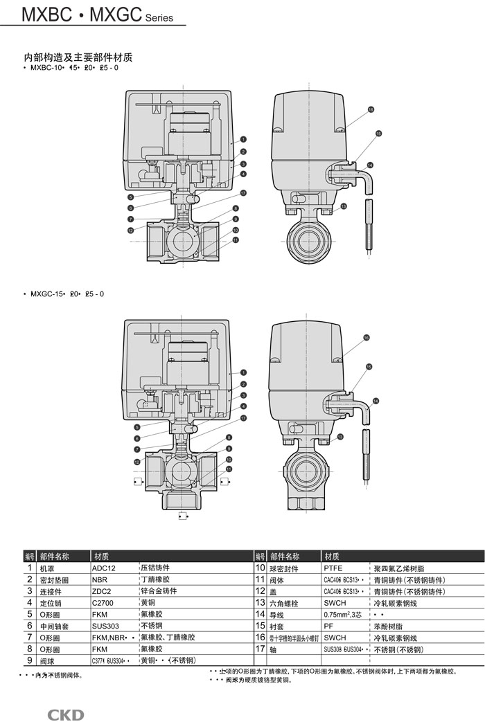 MXBC-10,MXBC-15,MXBC-20,MXBC-25,MXGC-15,MXGC-20,MXGC-25,MXBC-10-O-3,CKD電動式球閥2·3通電磁閥