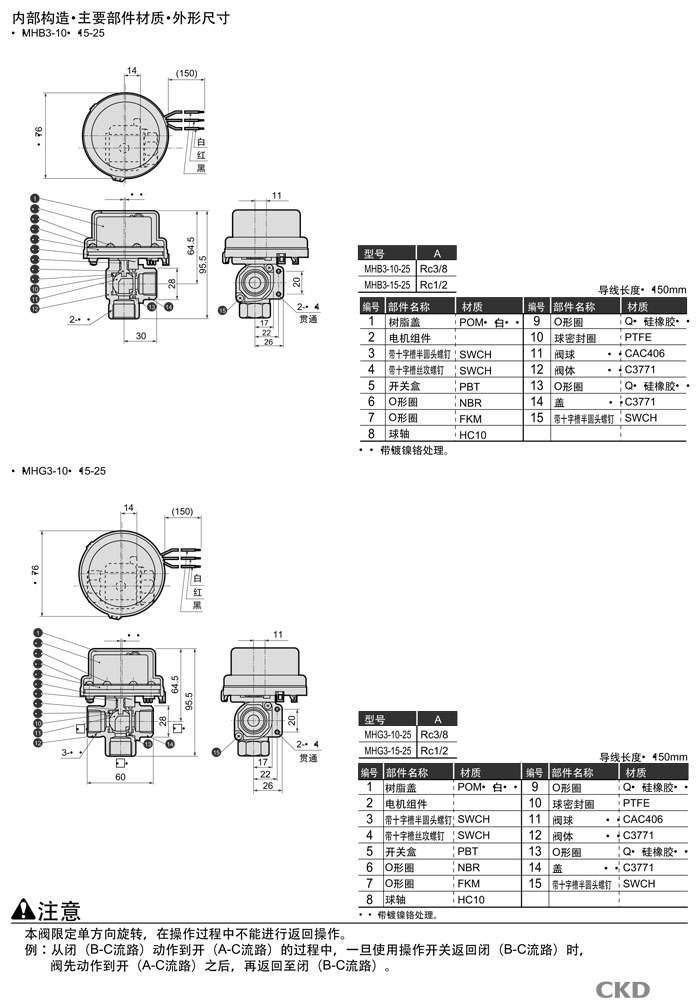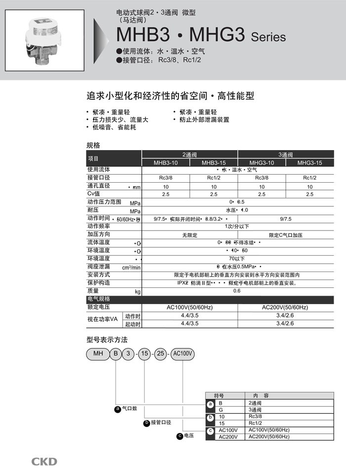MHB3-10-25,MHB3-15-25,MHG3-10-25,MHG3-15-25,CKD電動式球閥2·3通閥