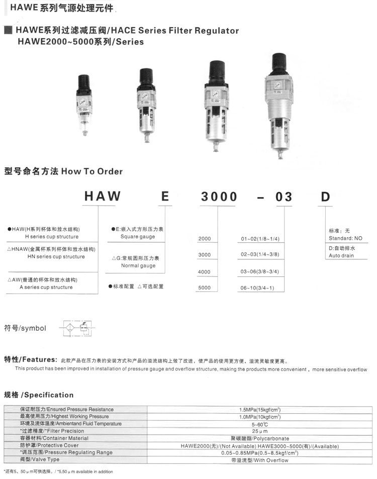 詳細(xì)信息 HAWE2000-01,HAWE3000-02,HAWE4000-03,HAWE5000-06,HAWE1500-1/8,減壓閥