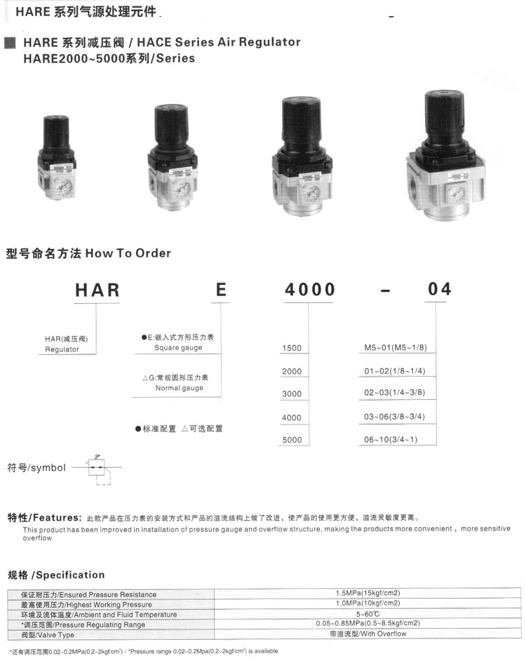 詳細(xì)信息 HARE1500-M5,HARE2000-01,HARE3000-02,HARE4000-03,HARE5000-06,HARE1500-1/8,減壓閥