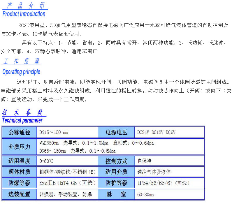 詳細(xì)信息 ZCSK-15,ZCSK-32BF,ZCQK-25,ZCQK-40BF,ZCSK-50,ZCQK-65BF,雙穩(wěn)態(tài)自保持式先導(dǎo)膜片電磁閥