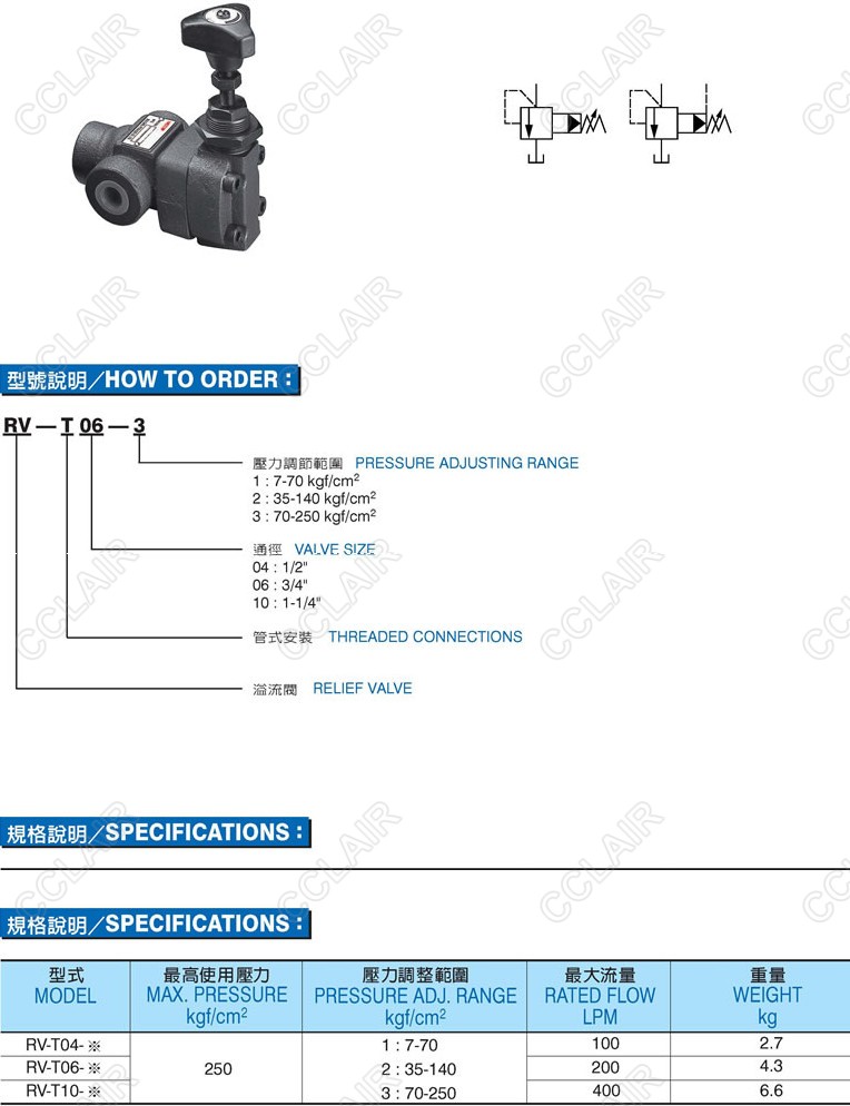 RV-T04-1,RV-T04-2,RV-T06-2,RV-T06-3,RV-T10-2,RV-T10-3,引導(dǎo)式溢流閥CML