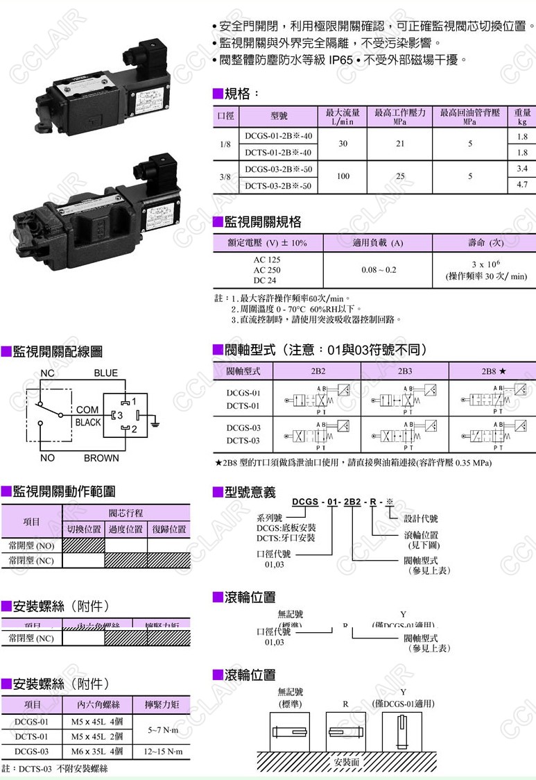 DCGS-01-2B2-40,DCGS-01-2B3-Y-50,DCTS-03-2B8-R-50,DCGS,帶監(jiān)視開關機動換向閥YUKEN