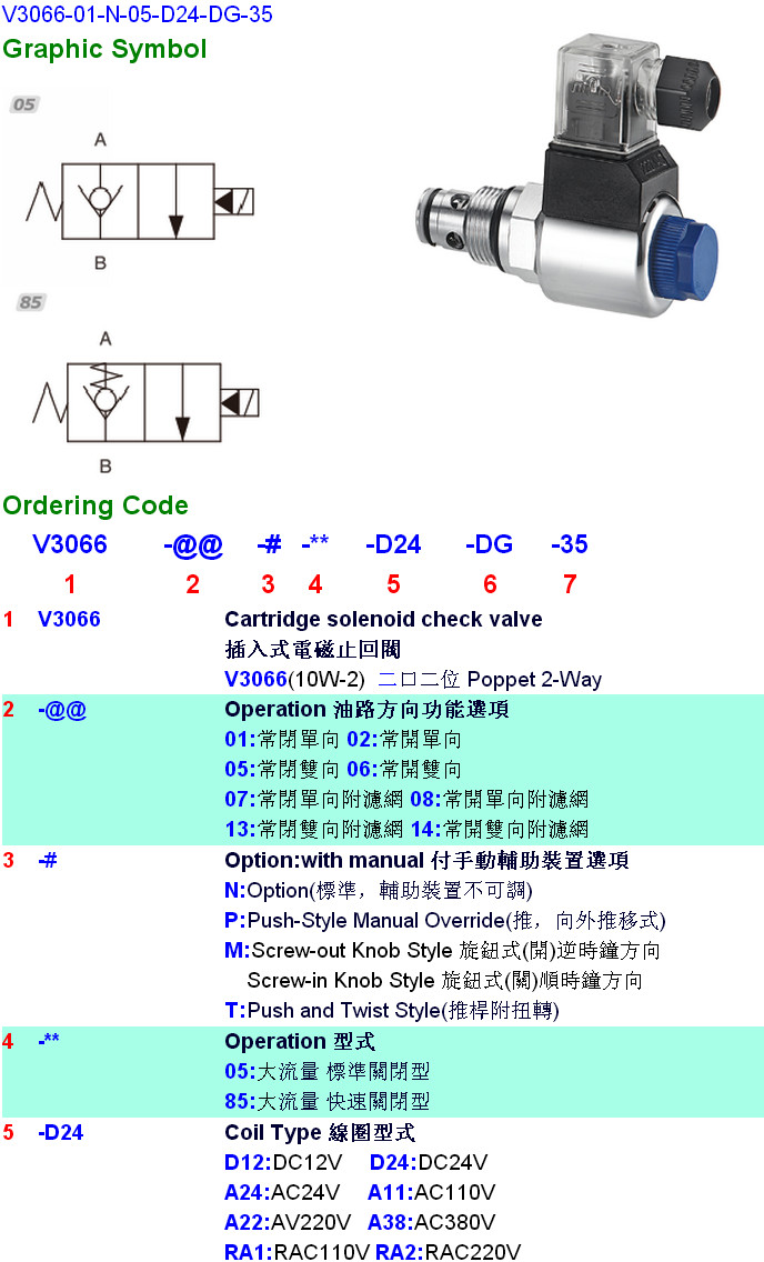 V3066-01-N-05-D24-DG-35,V3066-02,V3066-05,V3066-06,V3066-07,V3066-08,V3066-13,V3066-14,HYDROMAX插入式電磁