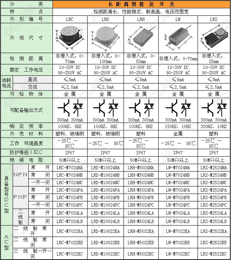 LRC-M7024NA,LRD-M10024NA,LRH-M5024NA,LW-M7024NA,LRS-M2524NA,LRC-M7024NB,長距離型接近開關