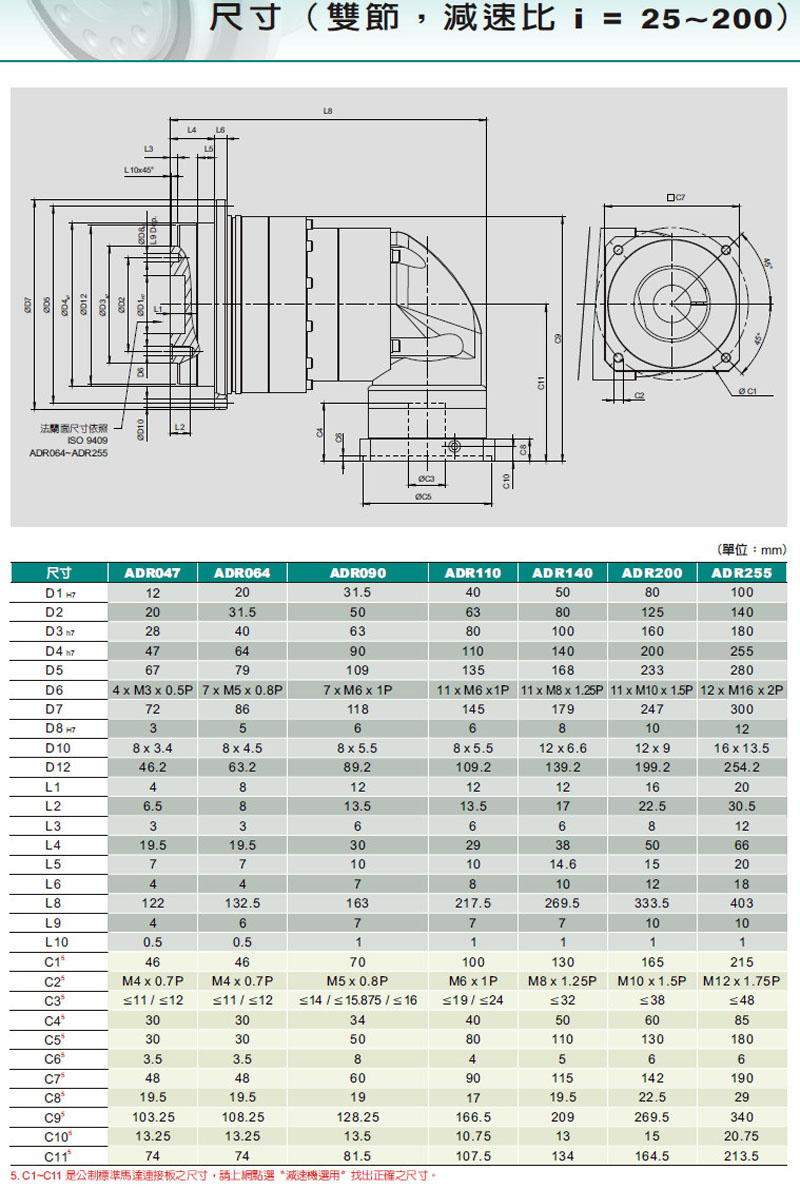 ADR047,ADR064,ADR090,ADR110,ADR140,ADR200,ADR255,伺服專用減速機