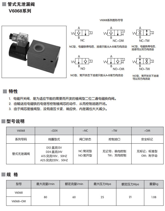 V6068-D12,V6068-D24,V6068-A15,V6068-A25,V6068-D12-NC-TW-OM,V6068-A25-NO,管式無泄漏閥