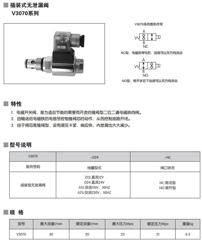V3070-D24-NC,V3070-A25-NC,V3070-D12-NC,V3070-D12-NO,V3070-A15-NC,V3070-A15-NO,插裝式無泄漏閥 詳細信息 V3070-D24-NC,V3070-A25-NC,V3070-D12-NC,V3070-D12-NO,V3070-A15-NC,V3070-A15-NO,插裝式無泄漏閥