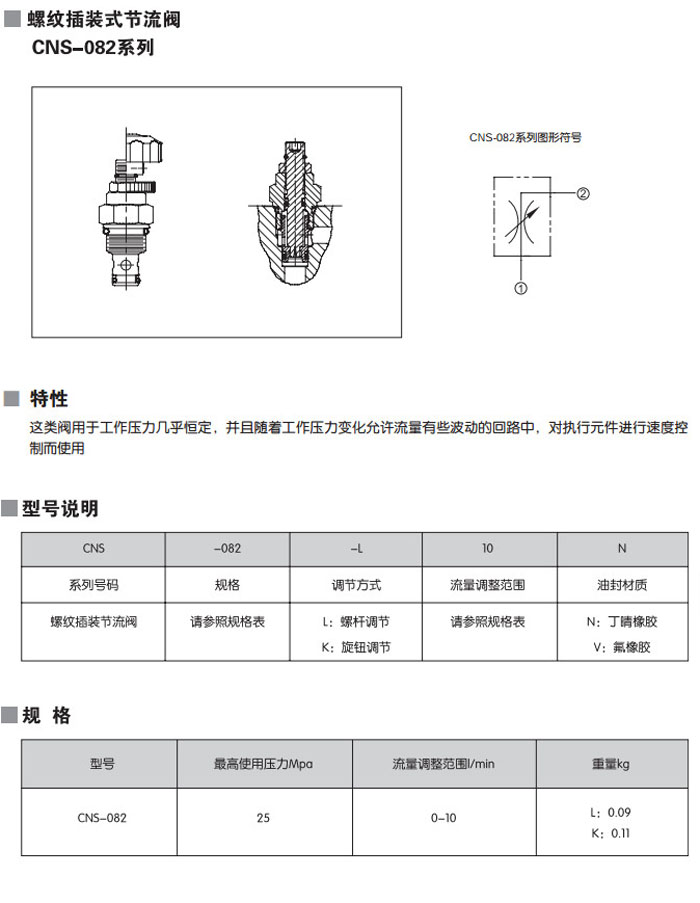 CNS-082-L10N,CNS-082-L10V,CNS-082-K10N,CNS-082-K10V,螺紋插裝式節(jié)流閥