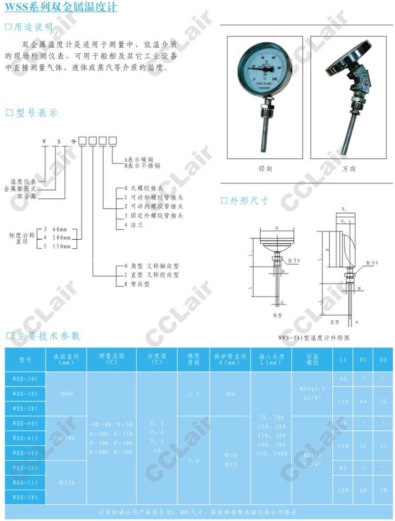 詳細(xì)信息 WSS-301,WSS-381,WSS-401,WSS-411,WSS-481,WSS-501,WSS-511,WSS-581,雙金屬溫度計,CCLair
