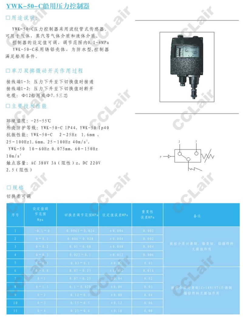 YWK-50-C,船用壓力控制器,CCLair