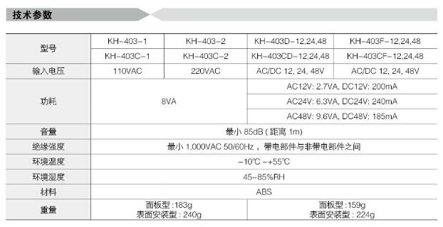 KH-403-1,KH-403C-1,KH-403D-12,KH-403CD-12,KH-403F-12,KH-403CF-12,KH-403CF-48,Koino交/直流蜂鳴器